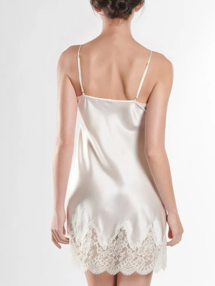Das kurze Seiden-Negligé Toi Mon Amour von Aubade ist eine luxuriöse Nachtwäsche in verführerischen Farben. Das edle Nachthemd besteht aus glänzendem Seidensatin (100% Seide) und exquisiter Blüten-Spitze.