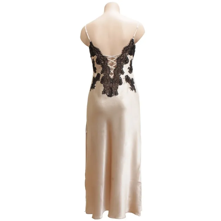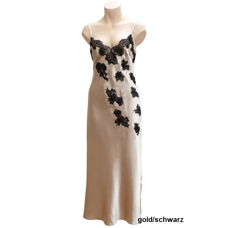 Langes Seidennachthemd Starshine gold oder schwarz mit Spitze von Gattina