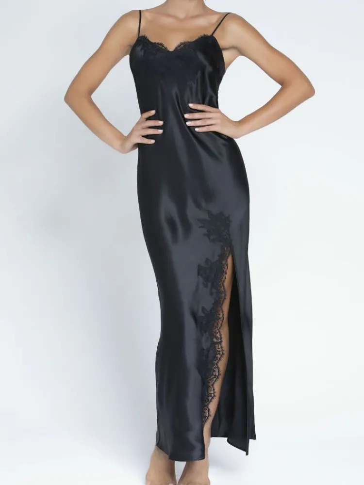 Alle Negligés|Seidenneglige^Lise Charmel Langes Seidennegligé SPLENDEUR SOIE mit Spitze von schwarz