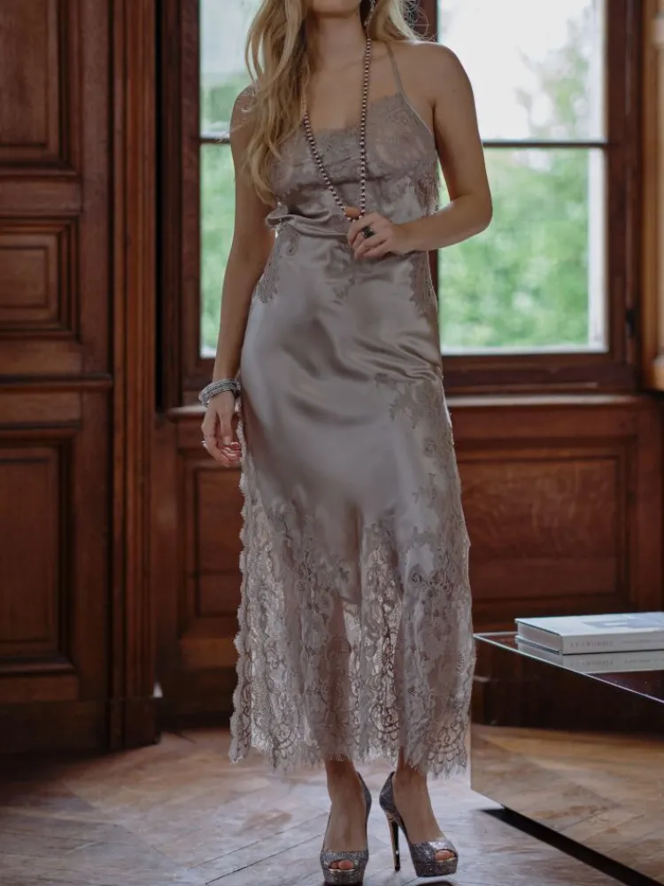 Marjolaine ist eine exklusive Marke aus Frankreich, die sich auf die Herstellung edler Negligés aus Seide und feinster Spitze spezialisiert hat. Seit ihrer Gründung hat sich die Marke einen Ruf für ihre unvergleichliche Qualität, ihr raffiniertes Design und ihre sinnliche Eleganz erworben. Marjolaine verkörpert die perfekte Symbiose zwischen Luxusmaterialien und handwerklicher Meisterleistung und ist weltweit bekannt für ihre exquisiten Kreationen mit inkrustierter Spitze. Die Verwendung von Seide, einem der edelsten und luxuriösesten Stoffe, macht Marjolaine Lingerie zu etwas Besonderem. Die sinnliche Textur und der schimmernde Glanz der Seide in den schönsten Farben verleihen jedem Negligé eine einzigartige Eleganz und Zartheit. Jedes Stück wird mit größter Sorgfalt und Präzision handgefertigt, um sicherzustellen, dass die Schönheit des Materials voll zur Geltung kommt und eine luxuriöse Bereicherung der Wäscheschublade bietet. Die Verwendung von französischer Spitze ist ein weiteres charakteristisches Merkmal von Marjolaine Lingerie. Die Spitze stammt von einigen der namhaftesten französischen Manufakturen z.B. aus Calais und verleiht den Kreationen eine romantische und verführerische Note. Die kunstvollen Spitzenverzierungen, die in den Seidensatin eingearbeitet sind, sind ein Fest für die Sinne und verleihen jedem Stück eine besondere Aura und Raffinesse.