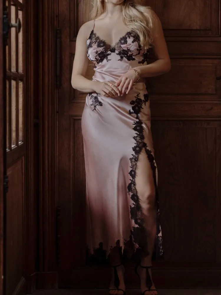Stilvolles Stretchseidenneglige Velvet mit Spitze von Marjolaine
