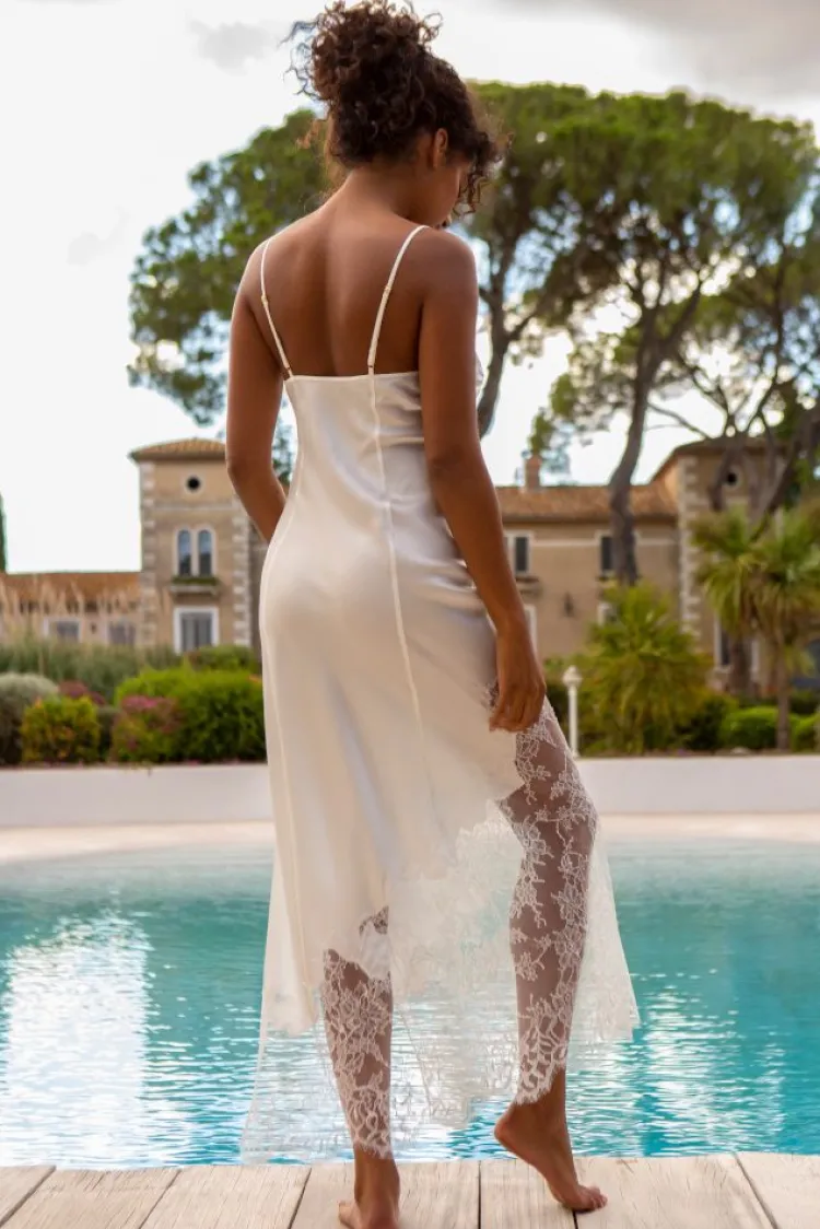 Seide Negligé lang Nymphe No. 4 mit Spitze Marjolaine