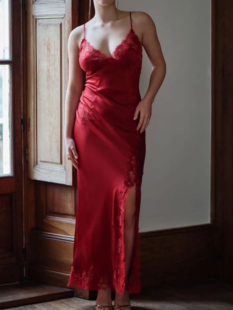 Stilvolles Stretchseidenneglige Velvet mit Spitze von Marjolaine