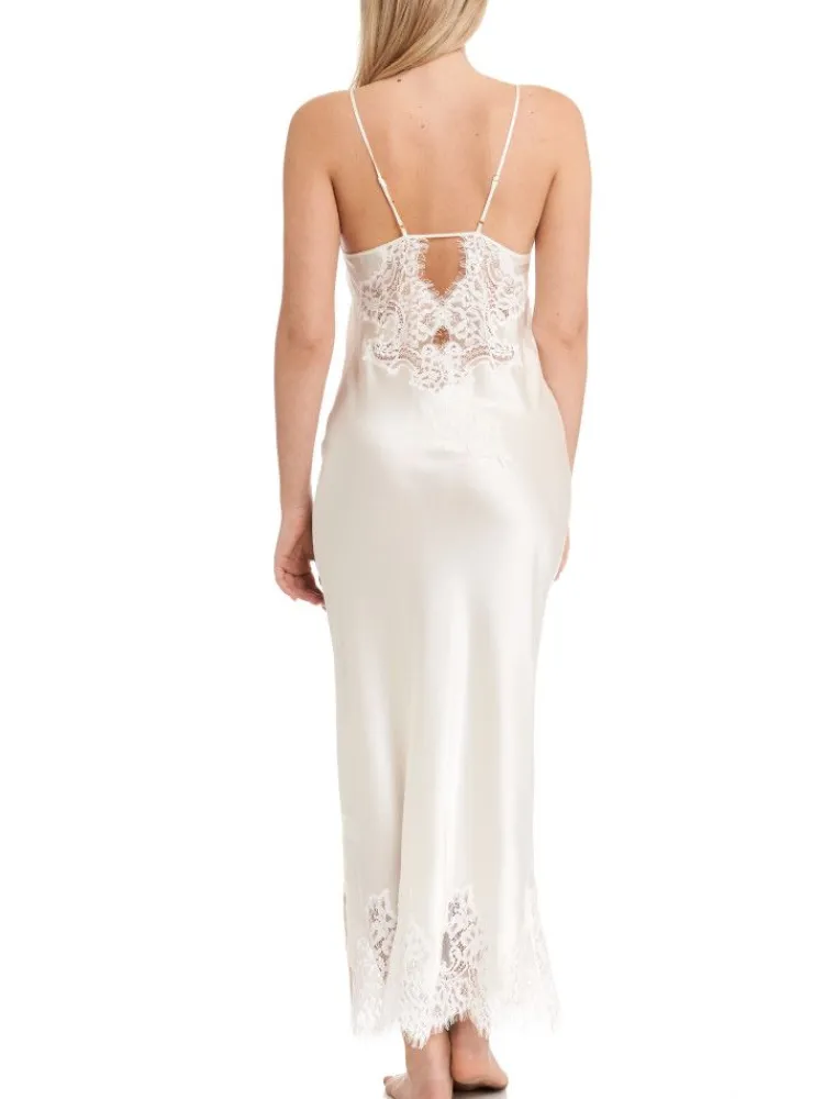 Stretchseide Seidenneglige Mailin lang schwarz oder weiß mit Spitze von Gattina