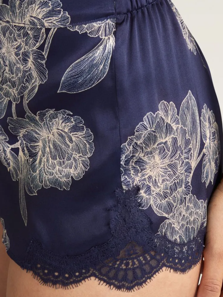 Die Seiden-Shorts Toi Mon Amour von Aubade ist eine luxuriöse Seidenwäsche mit verführerischem Musterdruck. Die edle Seidenshorts besteht aus glänzendem Seidensatin (100% Seide) und exquisiter Blüten-Spitze.