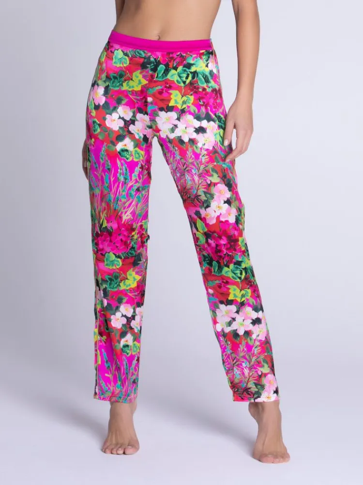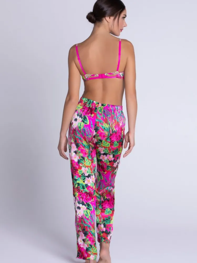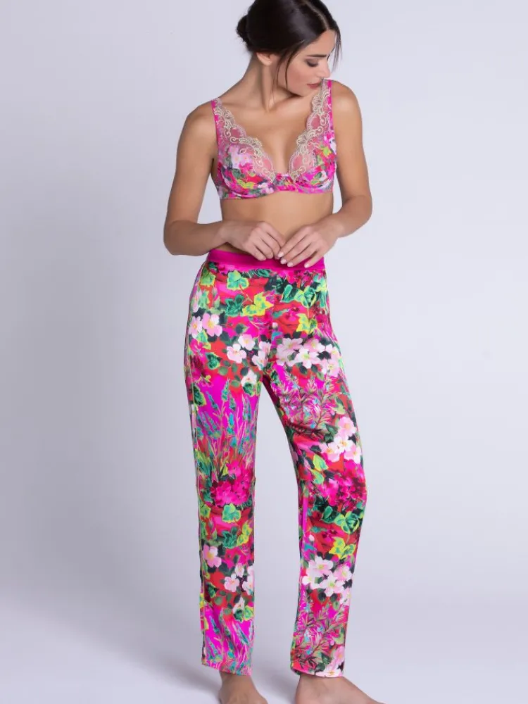 Seidenpyjamahose Envolee de Fleurs in fuchsia von Lise Charmel