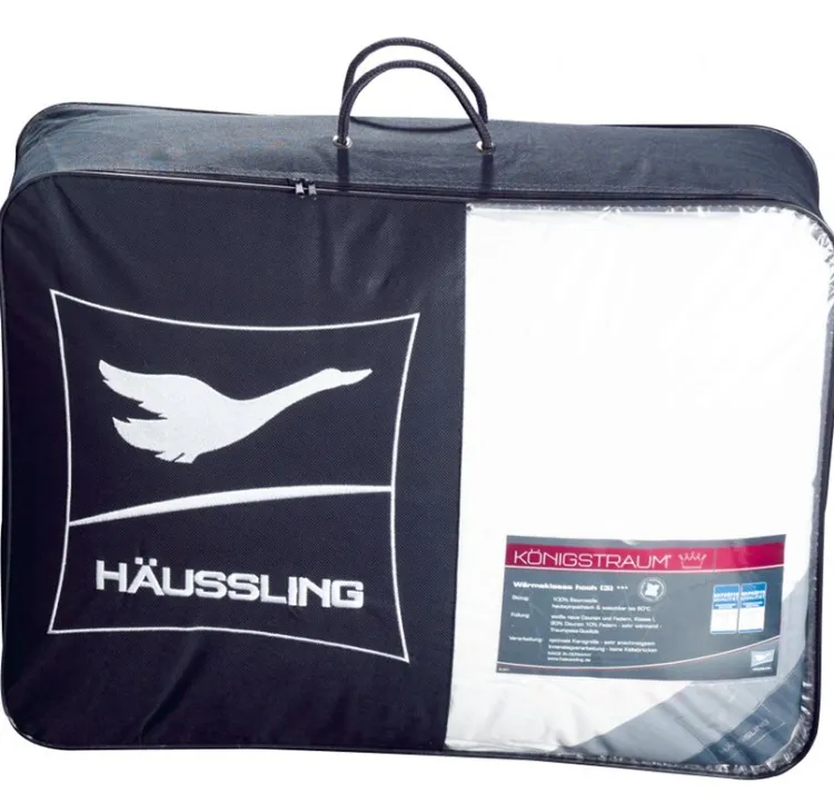 Die Firma Häussling ist ein traditioneller deutscher Hersteller von hochwertigen Markenbettwaren. Das Sortiment umfasst Sommer- und Winterbettdecken, sowie Kopfkissen und 4-Jahreszeiten Kombinationen aus Daune, Feder oder Markenfaser.