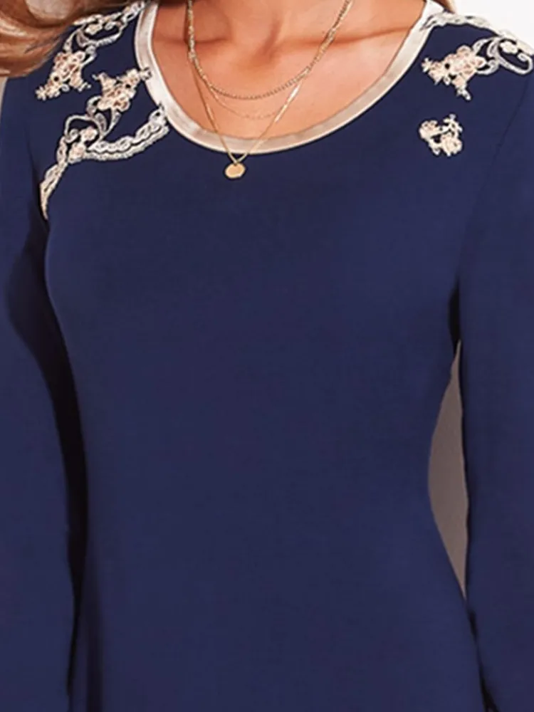 Edle Nachthemden^Chiara Fiorini Modal Langarm Nachthemd BLU No. 3 dunkelblau von blau mit Spitze