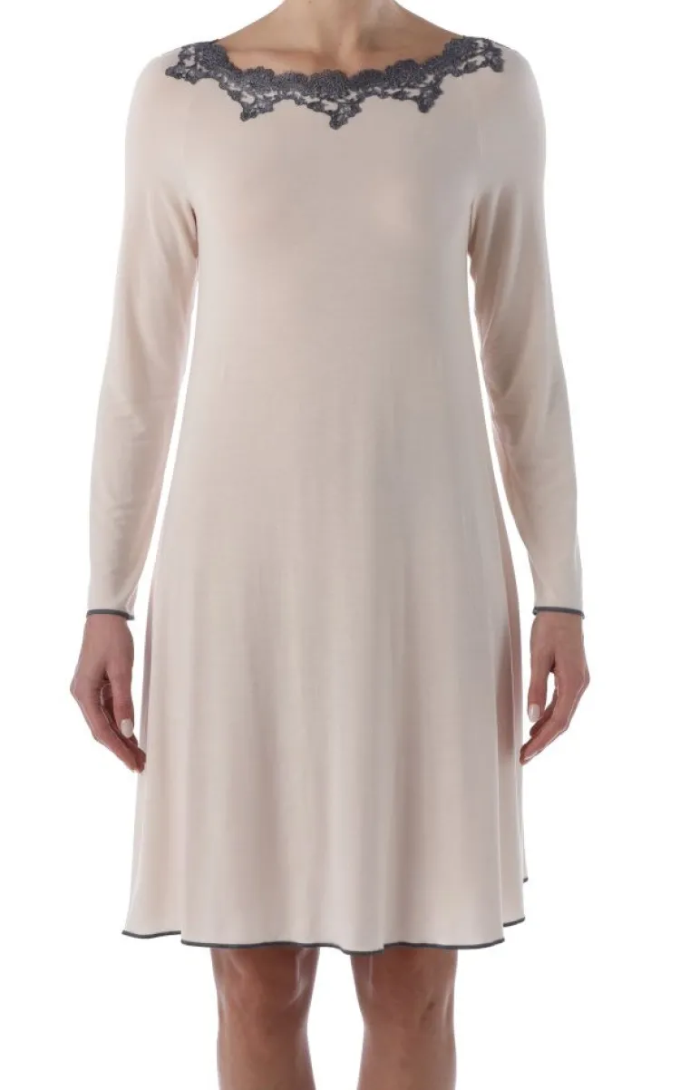 Edle Nachthemden^IMEC Langarm Nachtkleid EVA aus Modal von cremeweiss mit grauer Spitze