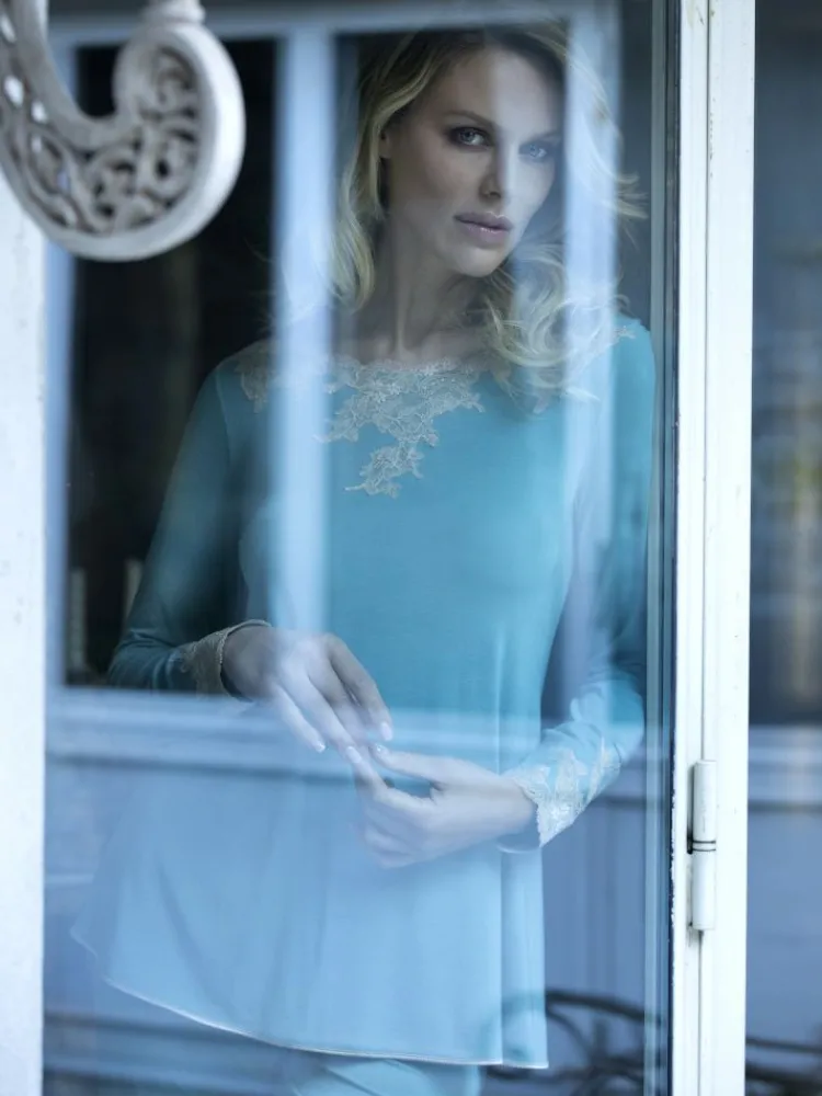 Feine Pyjamas^IMEC Pyjama SOPHIE jade-grün Modal von jade mit cremefarbener Spitze
