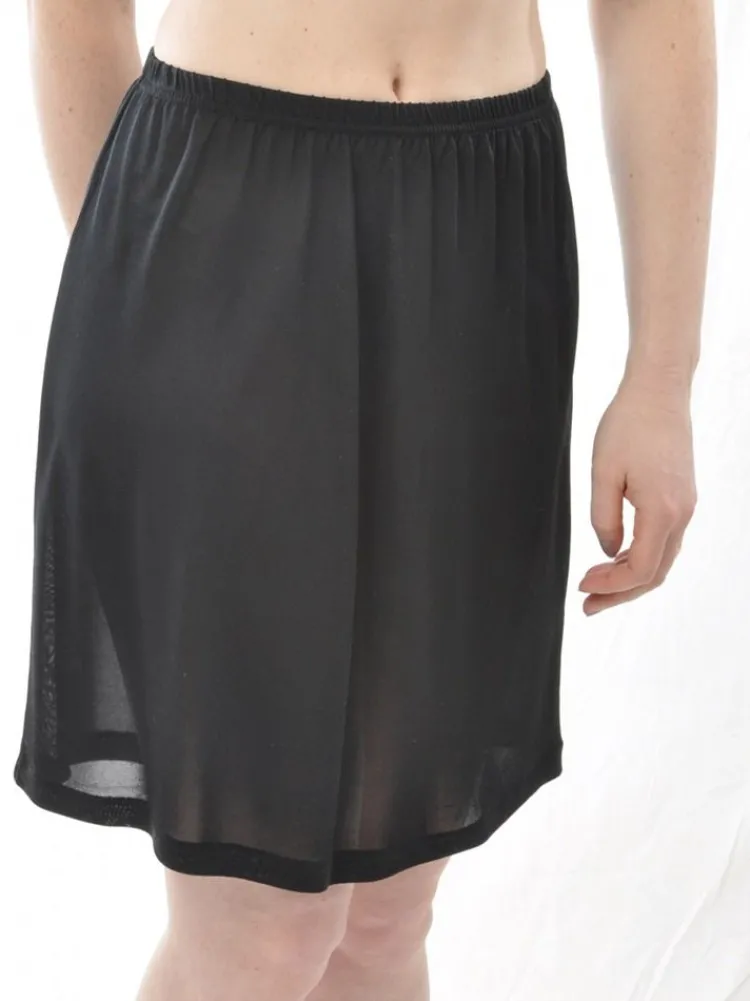 Das Grundmaterial dieser Unterwäsche Serie ist ein semi-transparenter Feinjersey aus 100% Seide, der ein Flächengewicht von ca. 78 g/m² hat. Seiden- Jersey ist hautsympathisch und sehr angenehm zu tragen. Er wirkt temperaturausgleichend, knittert nicht und trocknet schnell. Seide wärmt im Winter und ist angenehm luftig im Sommer, weshalb Seidenunterröcke für jede Jahreszeit geeignet sind. Außerdem ist dieses edle Material leicht elastisch und passt sich daher gut der Körperkontur an.