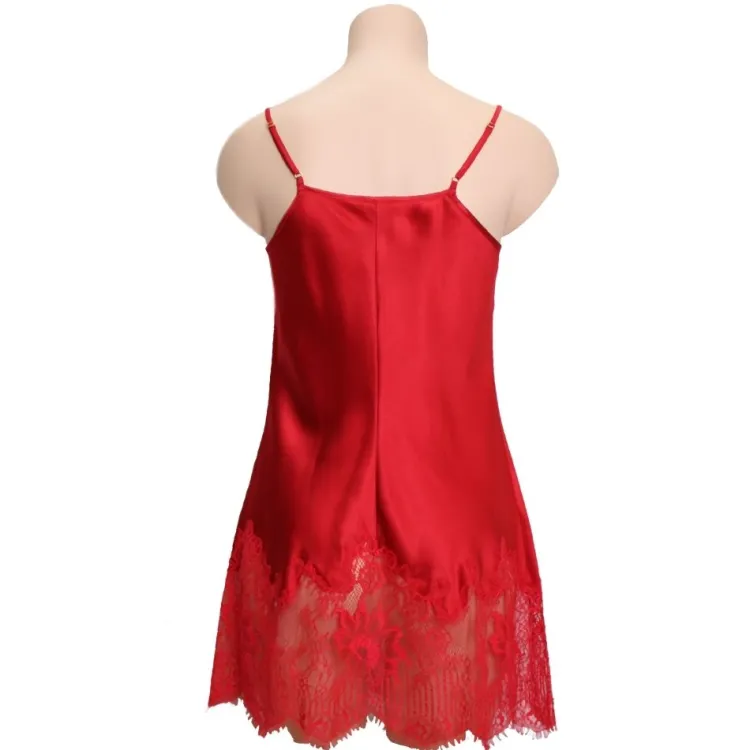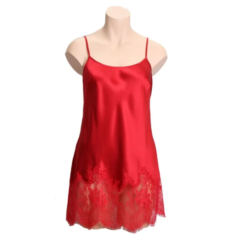 Dieses kurze Seidennegligé ist ca. 75-80 cm lang und hat verstellbare Spaghetti-Träger. Es ist in den folgenden Farben erhältlich:
