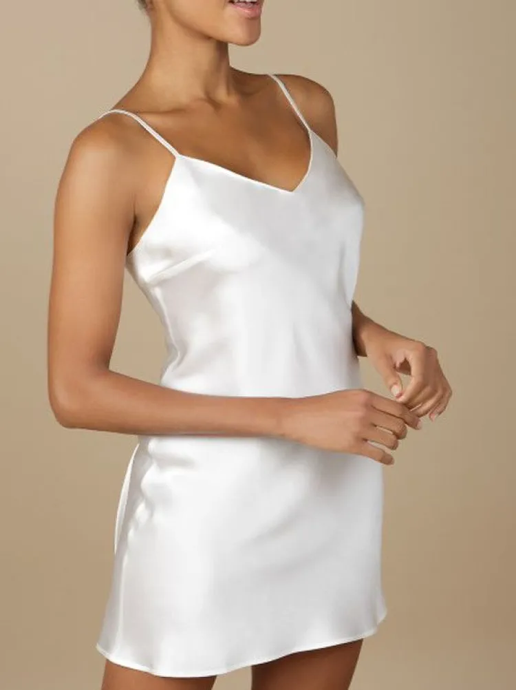 Dieses kurze Seiden-Nachthemd ist ca. 85 cm lang. Es wird in den Größen 34 bis 46 angeboten (deutsche Damengrößen) und ist in den folgenden Farben erhältlich. An der Brust hat das Nachthemd seitlich Abnäher für eine verbesserte Passform.