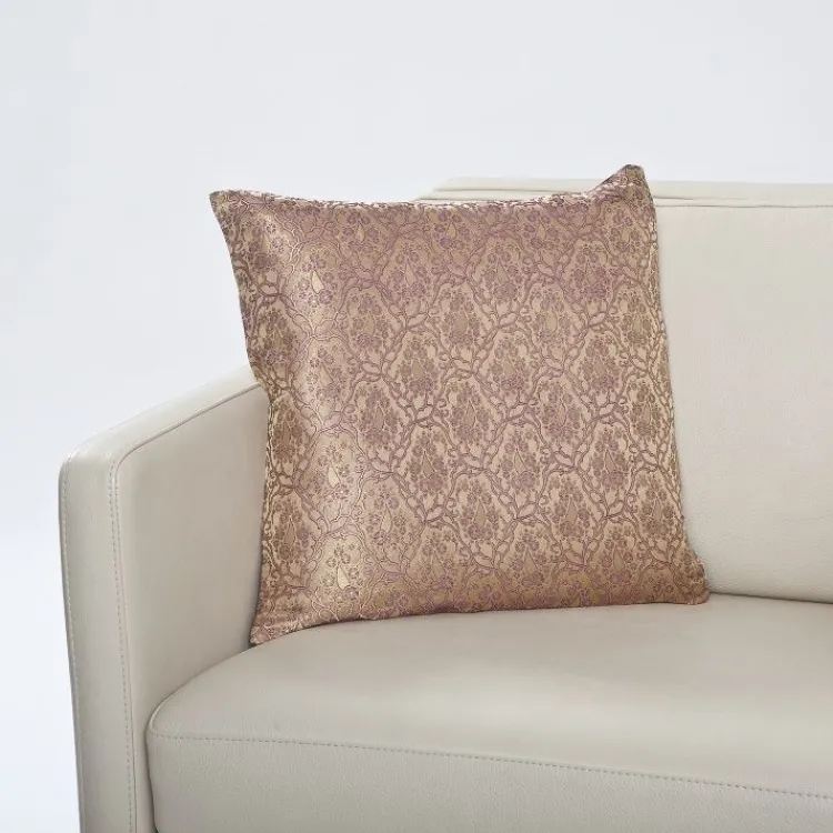 Die Zierkissen-Hülle Lakshmi aus handgewebtem Seidenbrokat zaubert stilisierte Ranken auf Ihr Sofa. Seidenbrokat ist die besonders ausdrucksstarke und reiche Weiterführung des Jacquards. In das detaillierte Muster werden dekorative metallisierte Fäden eingewoben. Das Gewebe besteht aus 75% Seide und 25% metallisiertem Garn.