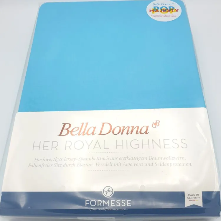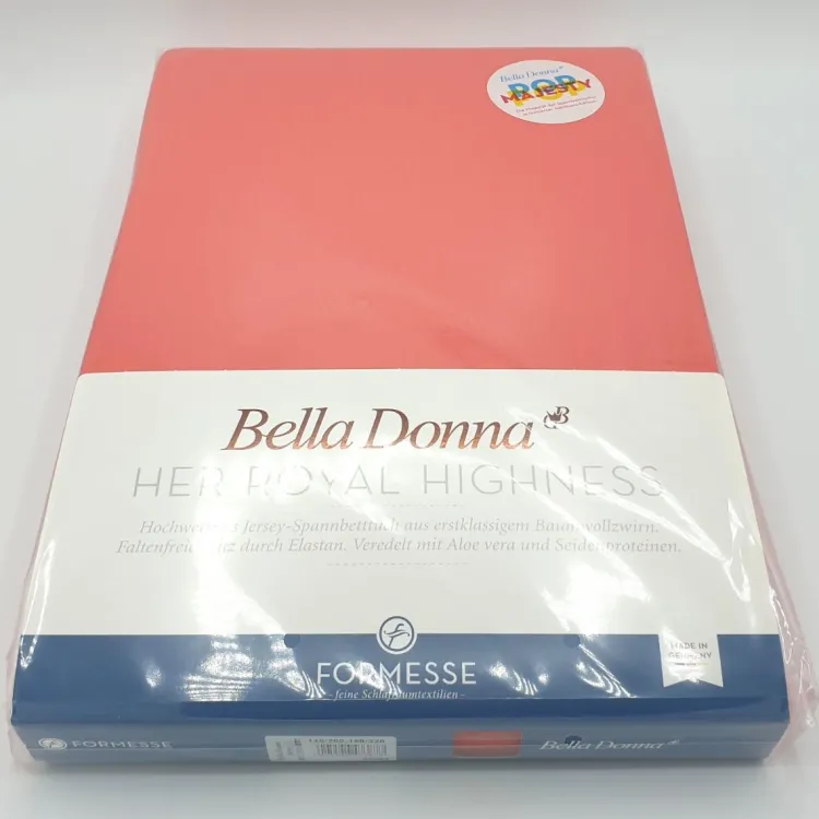 Der Jersey besteht wie auch beim normalen Bella Donna Laken aus supergekämmtem Makobaumwoll-Zwirngarn und erhält durch einen modernen Färbeprozess höchste Farbbrillianz und Farbechtheit. Durch den Elasthan-Anteil im Gewebe, den innovativen Eckenschnitt und den hoch-elastischen Gummibund wird eine perfekte Passform und ein faltenfreier Sitz erreicht, auch auf Wasserbetten und bei Übergrößen! Dieses Spannlaken wird für Matratzen mit bis zu 25 cm seitlicher Höhe empfohlen. Das Spannbettlaken ist schadstoffkontrolliert nach ÖkoTex100 (FI Hohenstein, Prüf.Nr. 97.0.7666) und hat ca. 220 g / m² Flächengewicht.