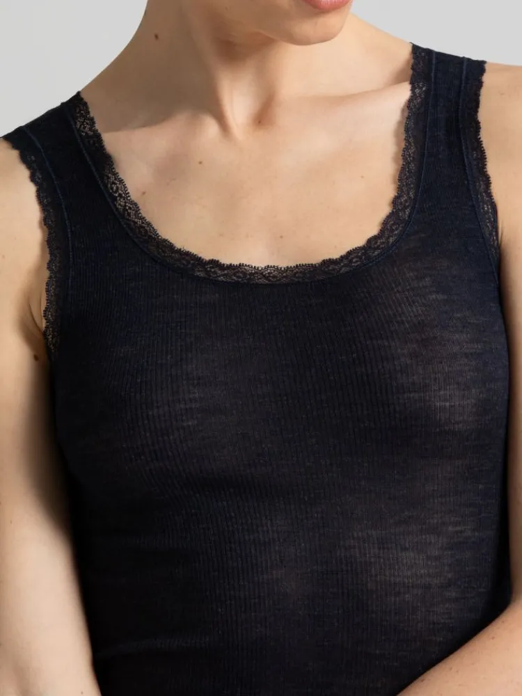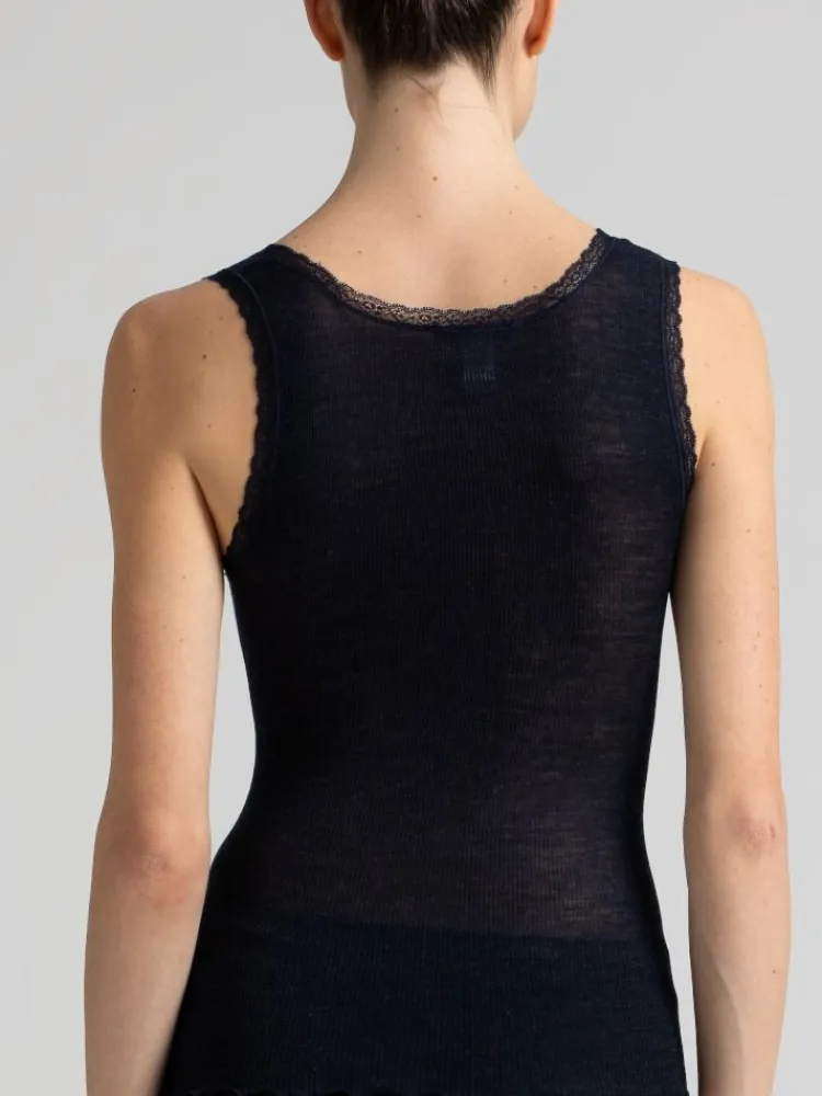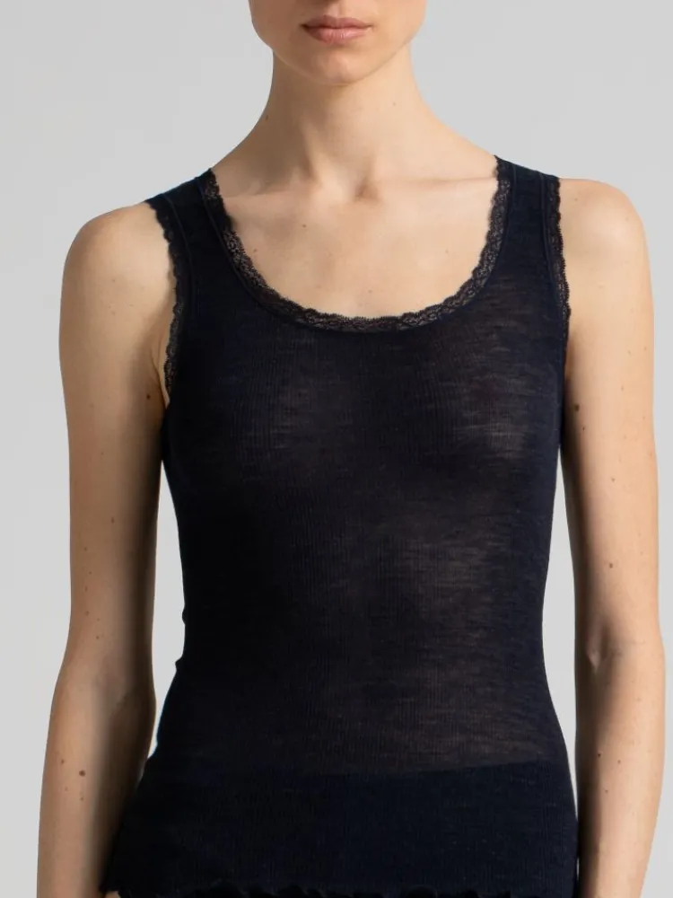 Tops Mit Spitze|Wolle-Seide Tops^Boglietti Wolle-Seide Träger Unterhemd OROSEI von in schwarz