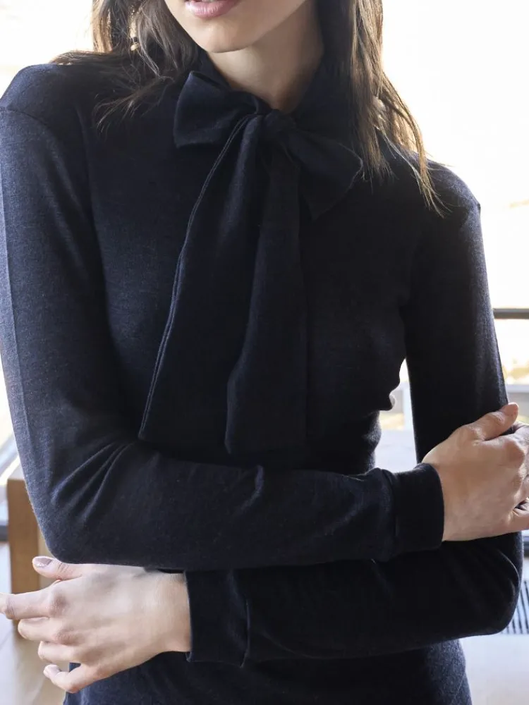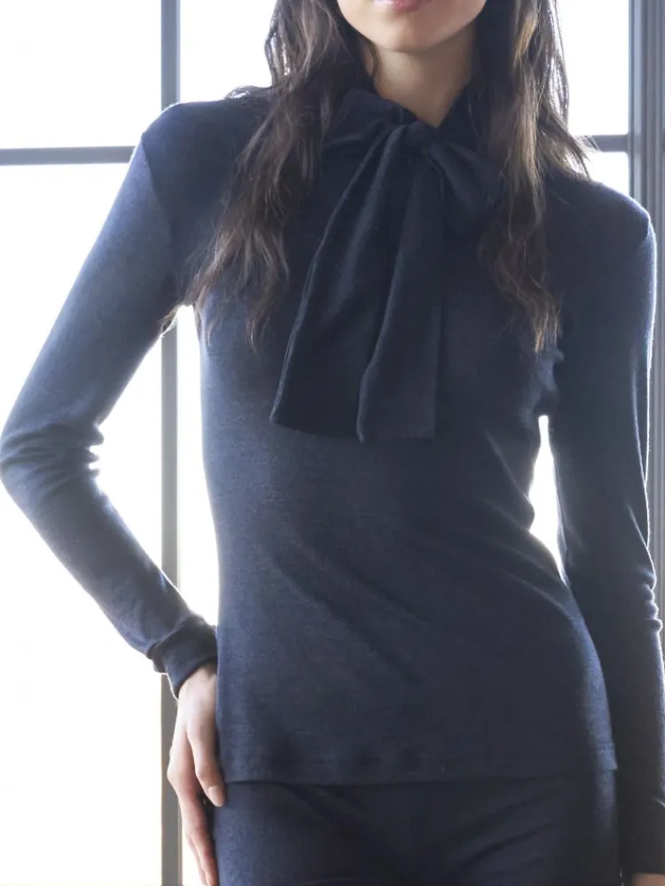 Wolle-Seide Shirt Briseide mit Schleife am Kragen von Boglietti