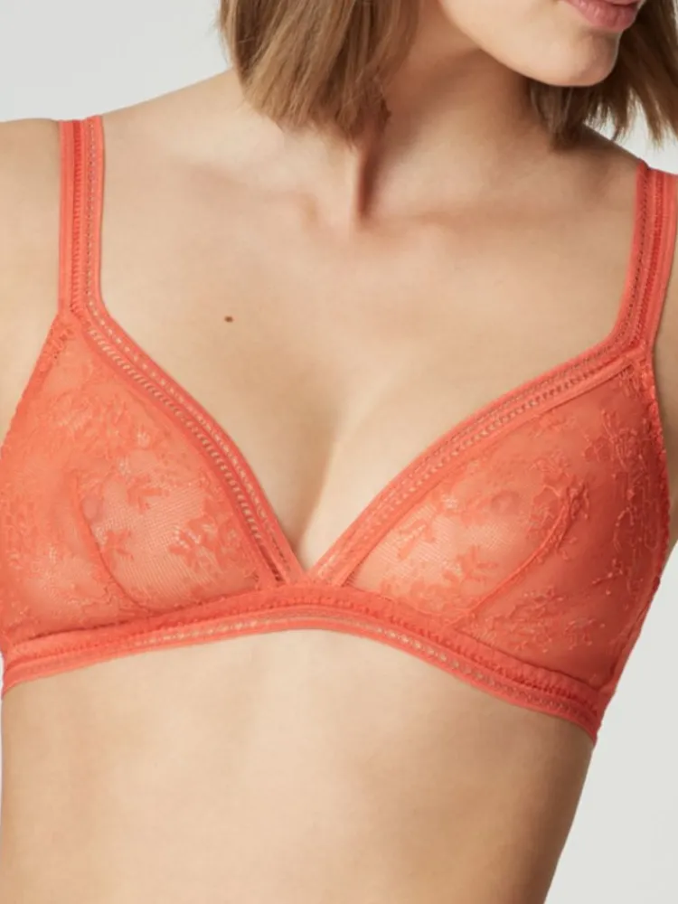 Der Triangel BH Miss Lejaby ist eine modische Lingerie der französischen Edel-Dessous Marke Maison Lejaby. Die Serie Miss Lejaby ist eine einfach zu tragende Spitzenwäsche für jeden Tag. Sie ist die Neuauflage der Linie Miss Liberty, die 1972 von Maison Lejaby entworfen wurde. Der BH hat ungefütterte Cups in Triangel Form. Die Cups ohne Bügel sind aus Tüllspitze mit Blumenmuster gearbeitet. Die Cups sind ungefüttert und transparent. Dieser BH ist aus der Basic Kollektion von Maison Lejaby und jede Saison in einer neuen, modischen Farbe erhältlich.