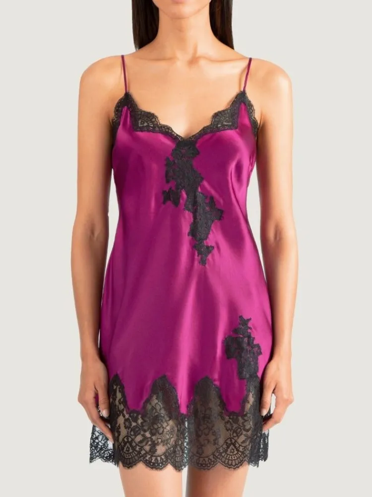 Das kurze Seiden-Negligé Soie d´Amour von Aubade ist eine luxuriöse Nachtwäsche in verführerischen Farben. Das edle Nachthemd besteht aus glänzendem Seidensatin (100% Seide) und exquisiter Blüten-Spitze.