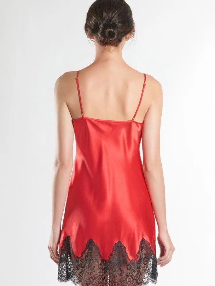 Das Seiden-Negligé ist ca. 88 cm lang und hat feine verstellbare Spaghettiträger. Unten hat es einen ca. 15 cm breiten Spitzensaum aus inkrustierter Spitze. Diese edle Seidenwäsche ist in den folgenden Farben und Größen erhältlich: