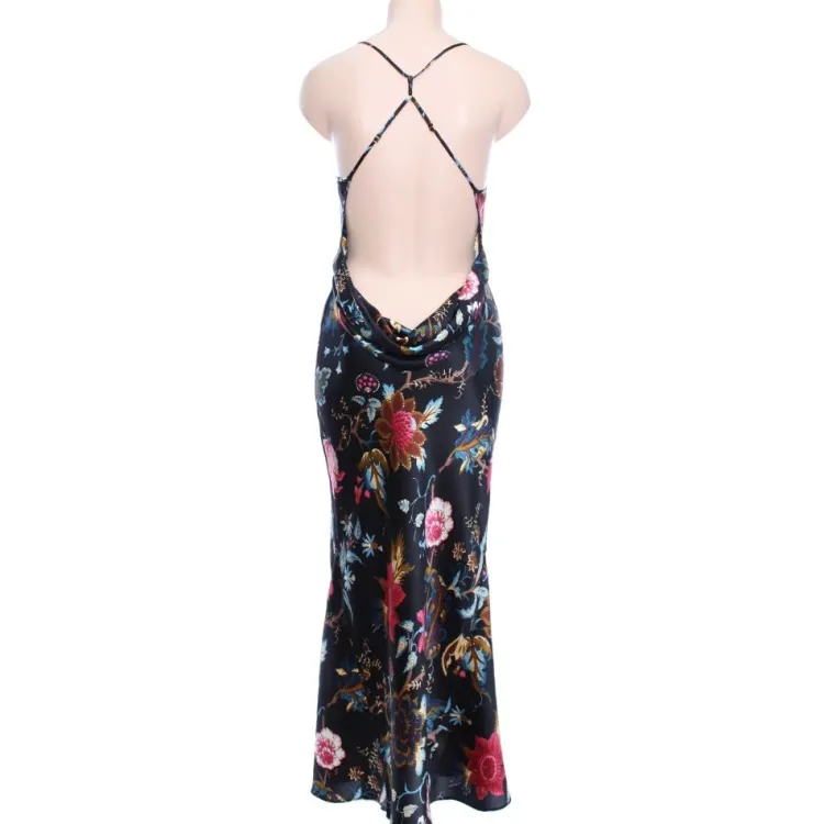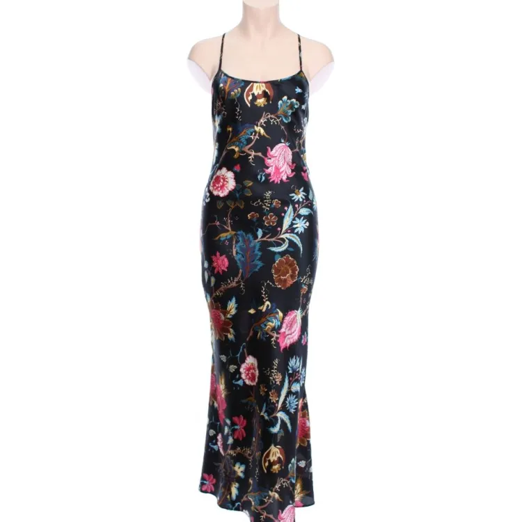 Seidennegligé Fidji von Marjolaine lang schwarz oder mit Blumenmuster
