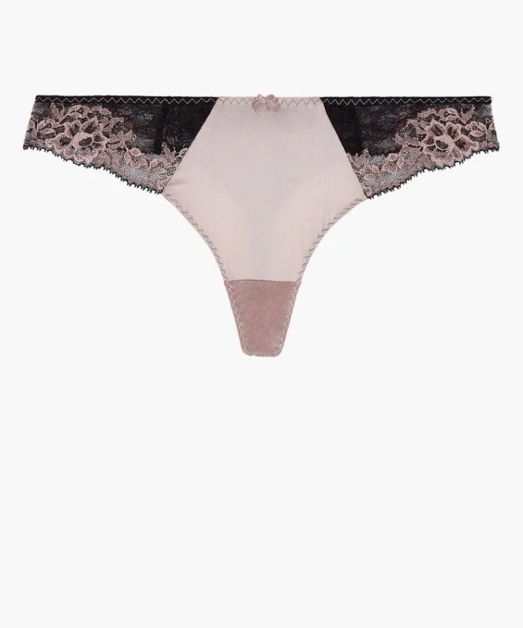 Alle Strings|Mit Seidensatin^Aubade String FEMME GLAMOUR altrosa-schwarz von mit Seide altrosa mit schwarz