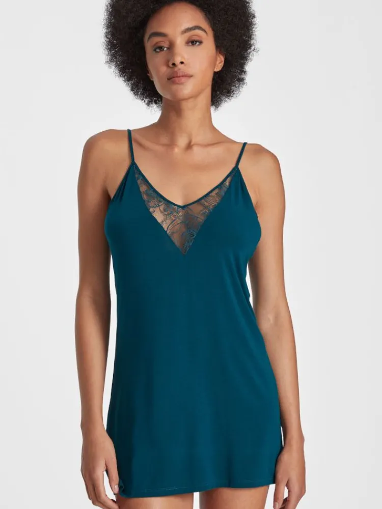 Edle Nachthemden|Alle Negligés^Aubade Kurzes Negligé LAZY DAYS mit Modal und Seide von schwarz und smaragdgrün