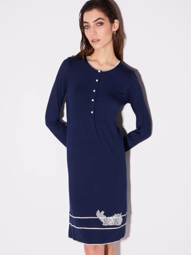 Micromodal Nachthemd Langarm beere oder marineblau von Chiara Fiorini