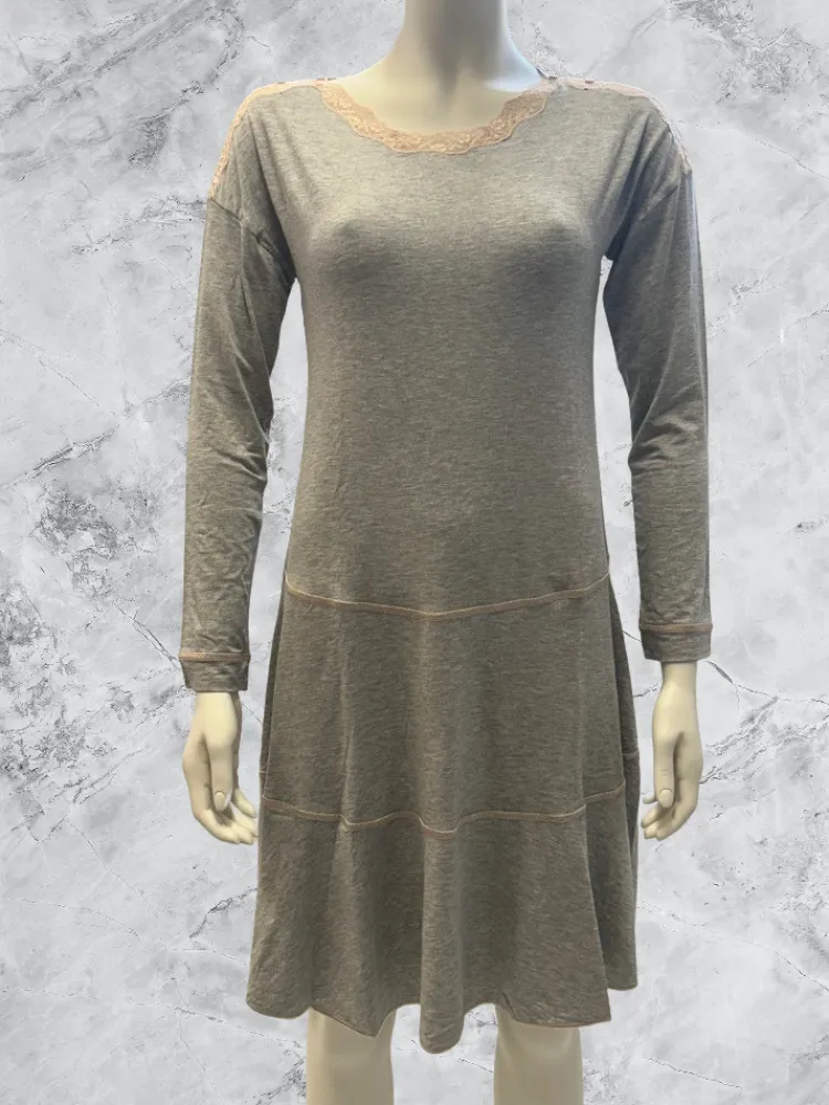 Paladini Nachthemd Alghero in hellgrau mit Spitze