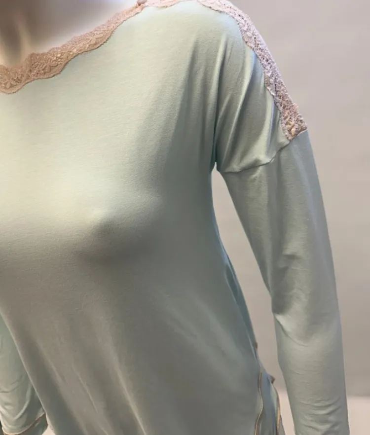 | Merkmale | blickdicht, Langarm, mit Spitze, Materialkombination |