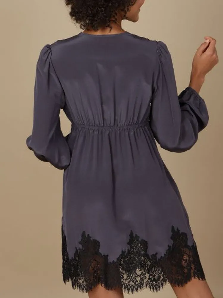 Das kurze Blusenkleid Indiscrete der französischen Edel-Marke Marjolaine ist eine Seidenwäsche der Luxus-Klasse. Hier wurde seidenmatte Crepe-Seide (100% Seide) in Kombination mit einer üppigen, schwarzen Spitze verarbeitet. Diese verführerische französische Seidenwäsche ist als Longbluse, Tunika oder kurzes Seidenkleid zu tragen.