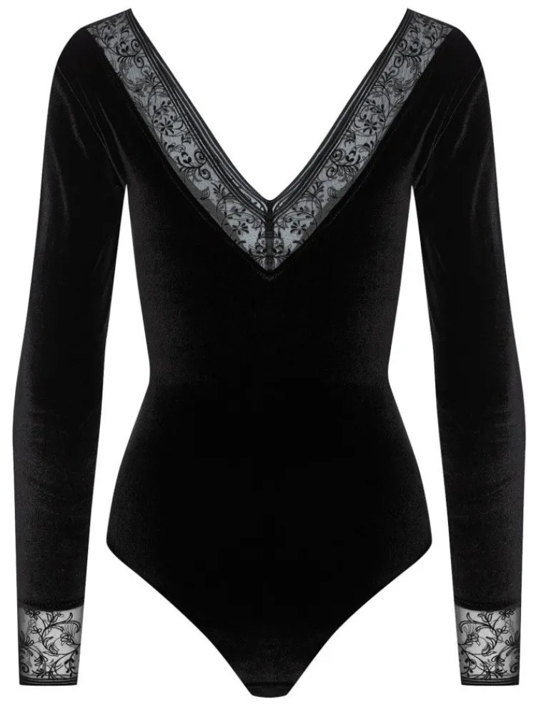 Langarm Body Floqui aus Samt schwarz von Cadolle