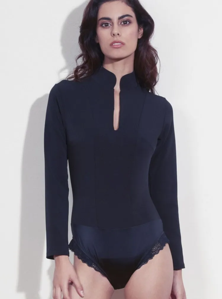 Langarm Body Offizier aus Twill schwarz von Cadolle