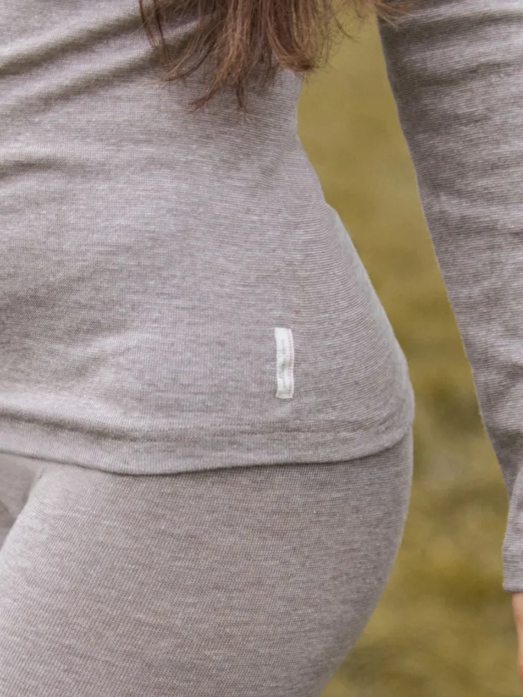 Das Grundmaterial dieser Wäsche Serie ist ein glatter Jersey, der in melierten Farbtönen hergestellt wird. Dieses Material ist hautsympathisch, angenehm zu tragen und hat einen weichen Griff. Baumwolle-Wolle-Seide wirkt temperaturausgleichend, knittert nicht und trocknet schnell. Sie wärmt im Winter und ist ausgleichend in der Übergangszeit. Außerdem ist dieses edle Material leicht elastisch und passt sich daher gut der Körperkontur an.
