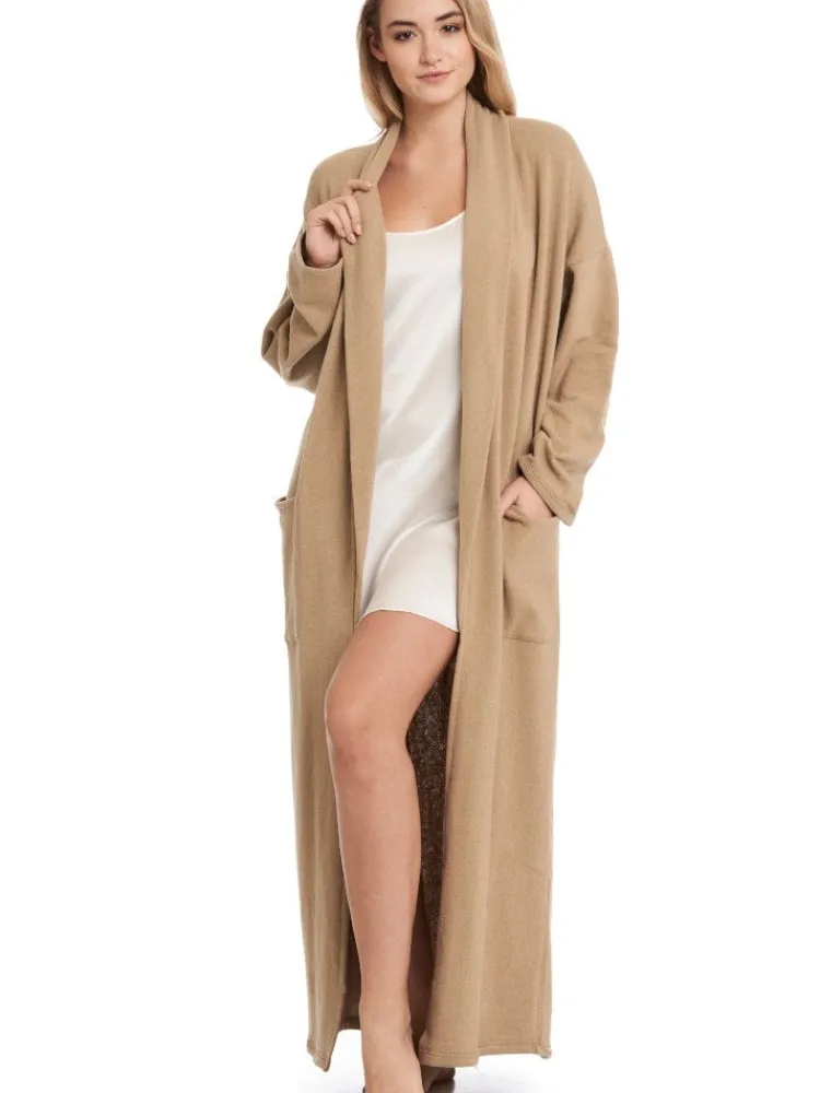 Dieser lange Morgenmantel ist eine wunderbare Lounge-Wear in der kalten Jahreszeit oder die perfekte Ergänzung zu Nachtwäsche, für alle die leicht frieren. Die Länge ist ca. 120 cm.