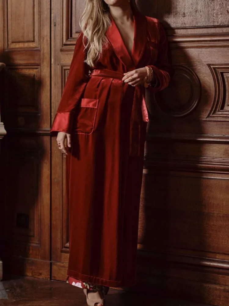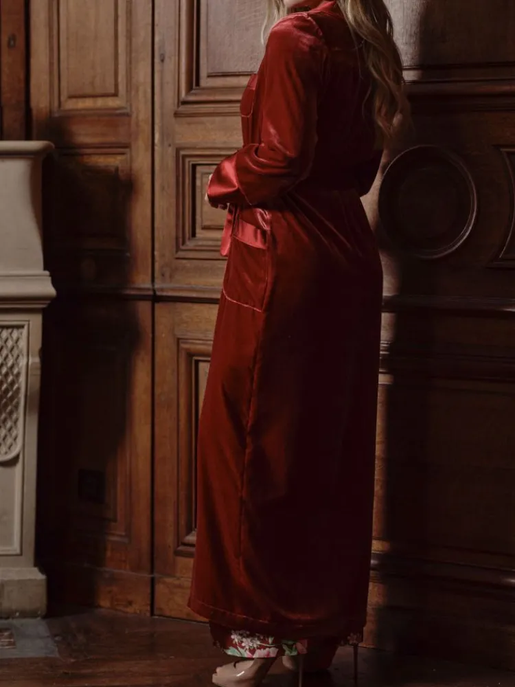 Lounge-Wear|Hausmantel (Warm)^Marjolaine Samt Morgenmantel VELVET in von burgunderrot