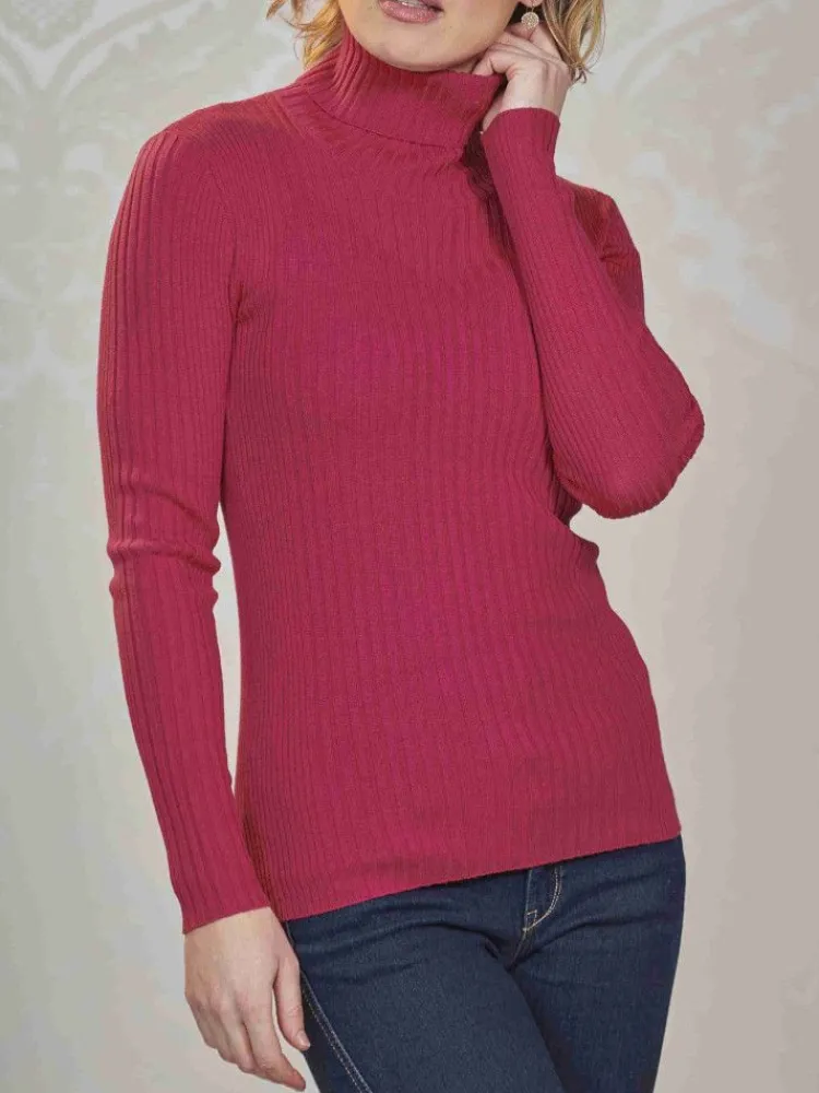 Reine Merino Wolle Rippstrick Rollkragen Pullover einfarbig von Kokon Zwo