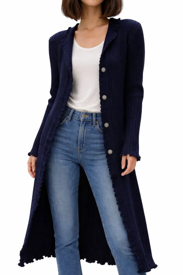 Filu ist ein eleganter langer Hausmantel in italienischem Stil von Paolucci „by Exilia“. Er besteht aus einem fließend fallenden, geripptem Feinstrick aus Merinowolle-Mix. Diese hochwertige Materialmischung verleiht dieser eleganten Lounge-Wear einen eleganten Touch und ist haltbar, fein wärmend und temperaturausgleichend. Mit einer Länge von ca. 120 cm hüllt Sie der Mantel aus leichtem Wollstrick ein wie in eine zweite Haut. Der griffige Stoff aus 50% Merinowolle ist angenehm wärmend, wirkt aber auch an kühleren Sommerabenden wohl temperierend. Knöpfe aus Perlmutt vollenden das italienische Design.