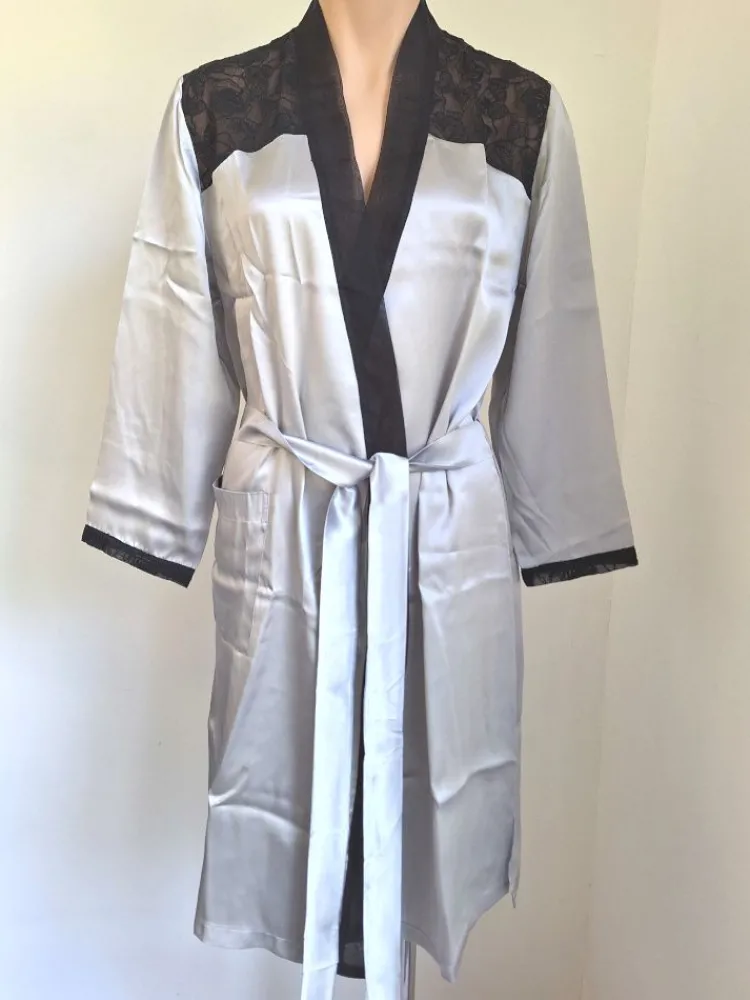 Seide Morgenmantel Vancouver silber-schwarz von Gattina