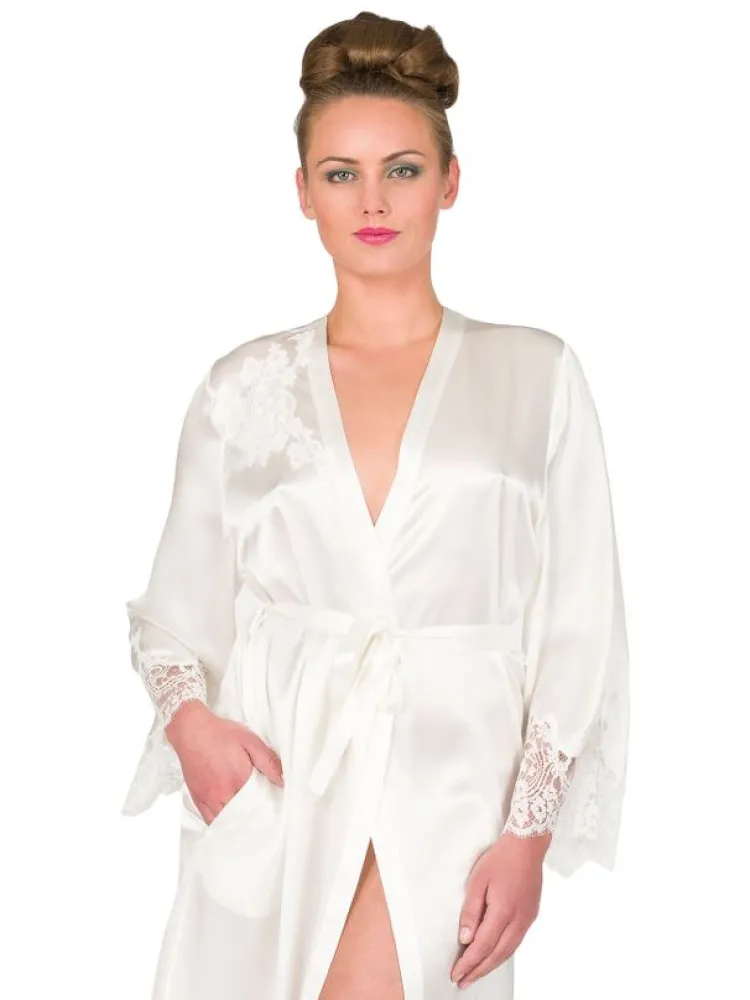 Morgenmantel Kurz|Morgenmantel Aus Satin^Marjolaine Seide Morgenmantel JARDIN kurz mit Spitze