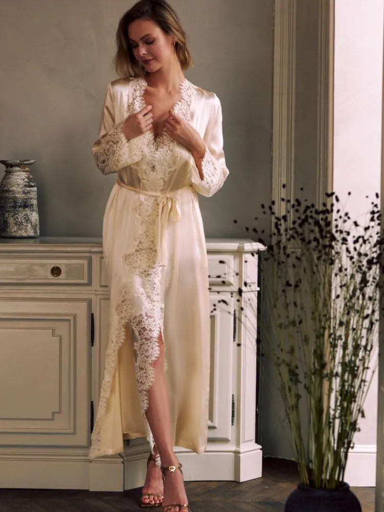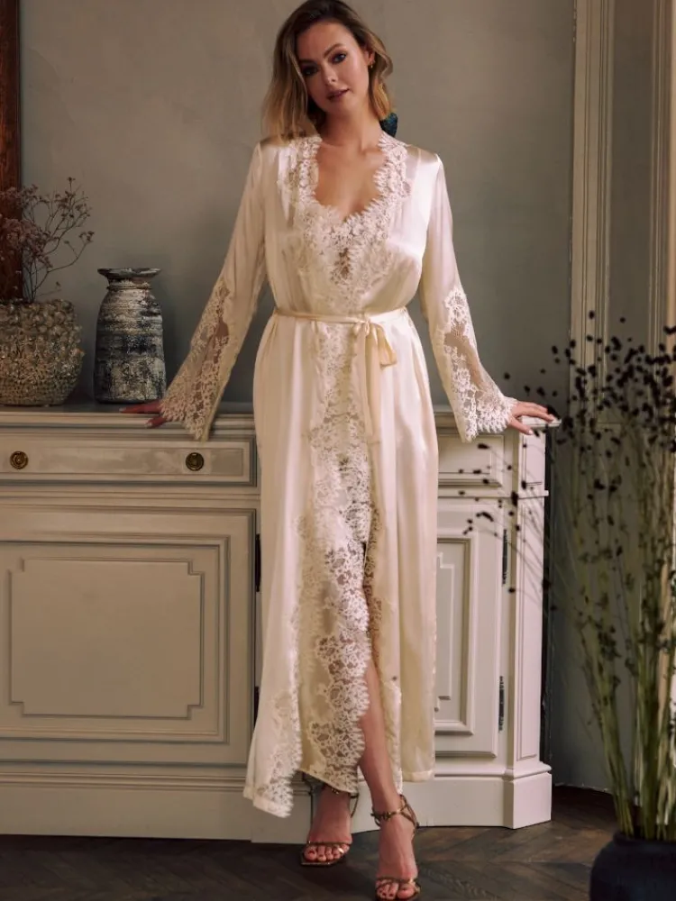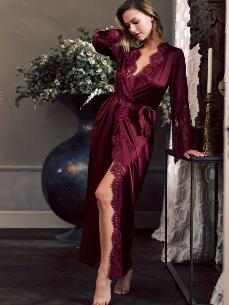 Luxus Morgenmantel Ruby von Marjolaine mit Spitze verziert
