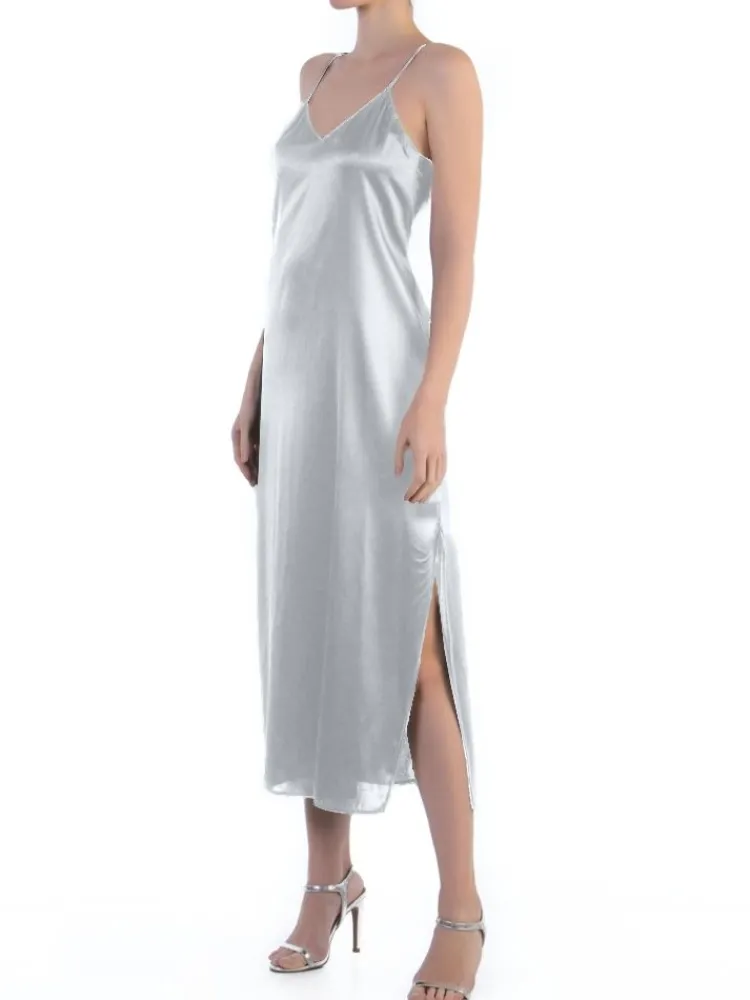 Das lange Seiden Nachtkleid hat fein gearbeitete, verstellbare Spaghettiträger und ist ca. 130 cm lang. Der V-Ausschnitt ist zur Verbesserung der Stabilität mit einer Seidenlage hinterlegt (gedoppelt). Das Nachtkleid ist auf der Seite hoch geschlitzt und fällt größengerecht aus. Es ist in den folgenden Uni-Farben erhältlich.