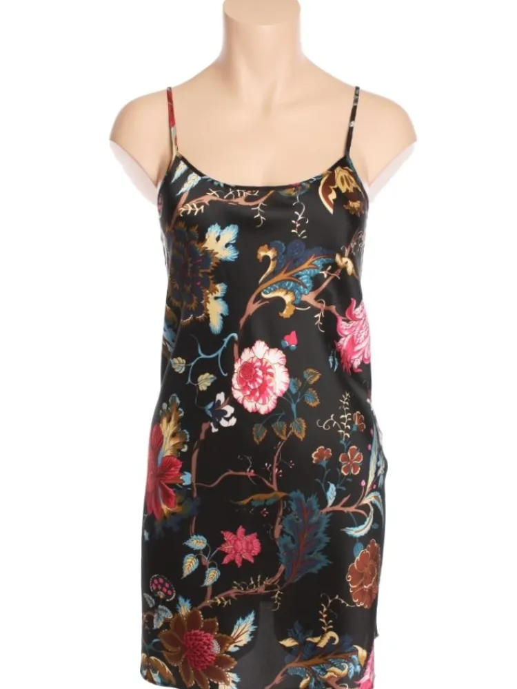 Die perfekte Ergänzung zu dem kurzen Seidennachthemd sind die separat erhältlichen Morgenmäntel von Marjolaine in der Farbe schwarz oder sand oder auch die Teile aus der Fidji Kollektion mit Blumendruck.