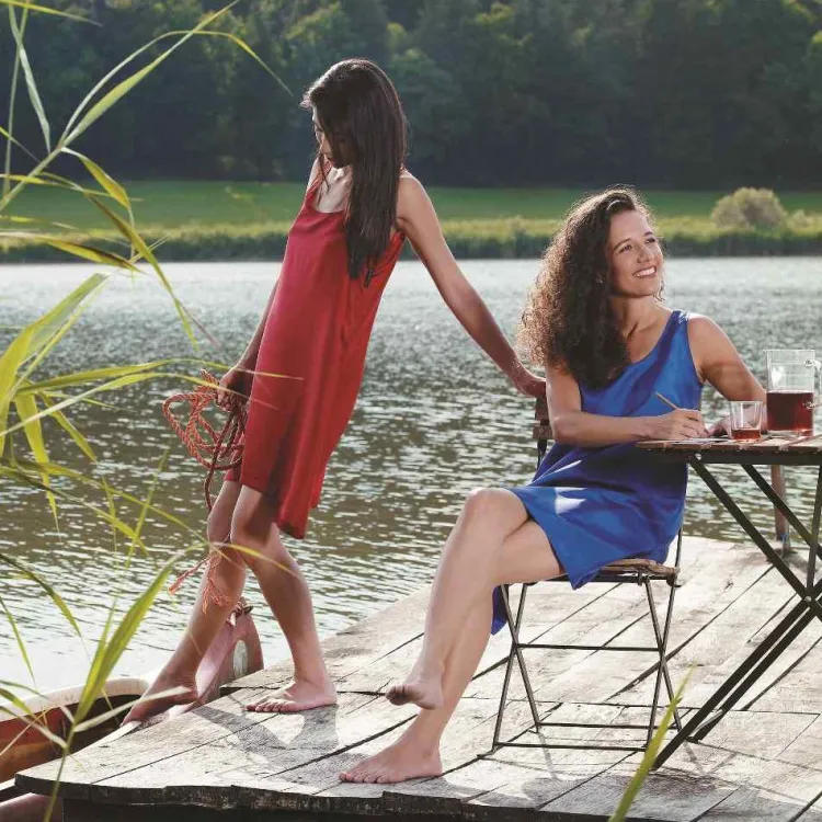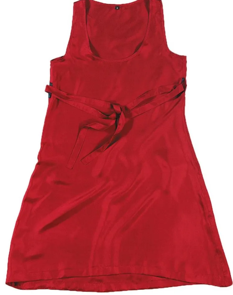 Das kurze Reise-Seidenkleid gibt es in den Farben blau, raspberry-rot oder schwarz (black) und in Größe S bis L (schwarz auch XL). Es hat eine unkomplizierte Passform und einen Bindegürtel. Mit dem Packmaß von 12 x 10 x 2 cm und einem Gesamtgewicht von nur 60 bis 69 g (je nach Größe) fällt dieses handliche Reisekleid aus Seide im Gepäck kaum auf. Das Seidenkleid wird gefaltet in einem kleinen Netzbeutel mit Zugband geliefert.