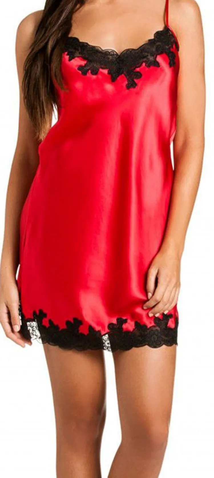Seidennachthemd Sakhali rot oder schwarz mit Spitze von Gattina