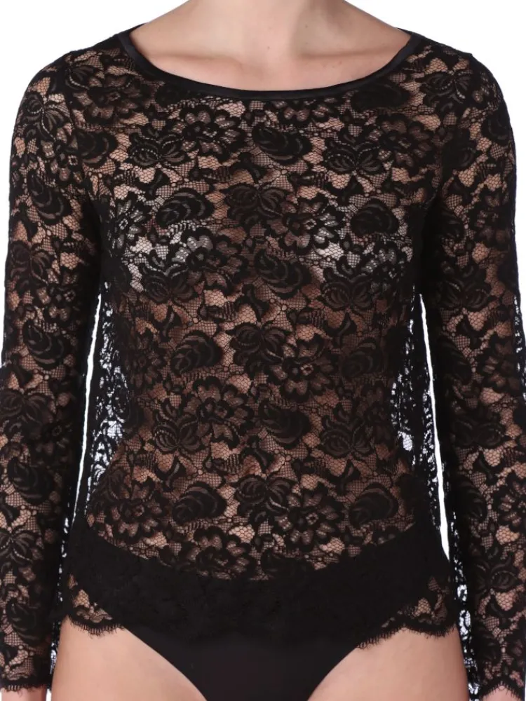 Shirt Mit Spitze|Langarm^IMEC Spitze Shirt EMMA mit Viscose von schwarz