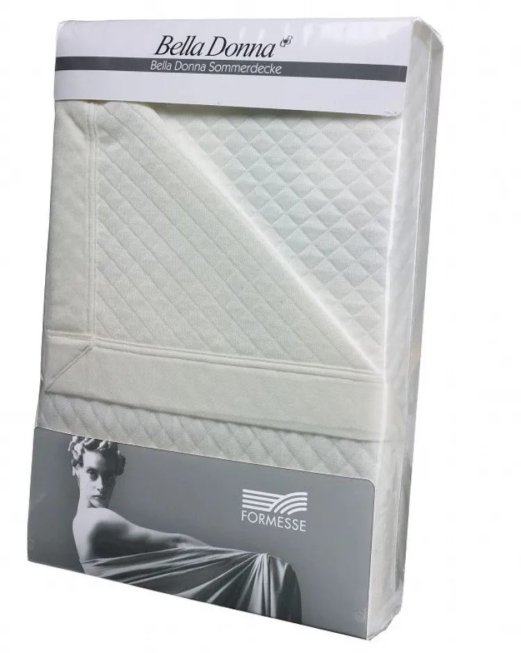 Die Bella Donna Sommerdecke ist ein Spitzenprodukt von Formesse. Diese besonders weiche, leichte Sommerdecke mit ihrem kleinen Rautenmuster, ist ein eleganter „Hingucker“ für das Schlafzimmer oder das Sofa.