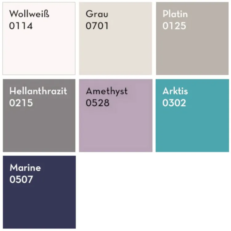 - wollweiß, beige, amethyst, anthrazit, türkis oder grau