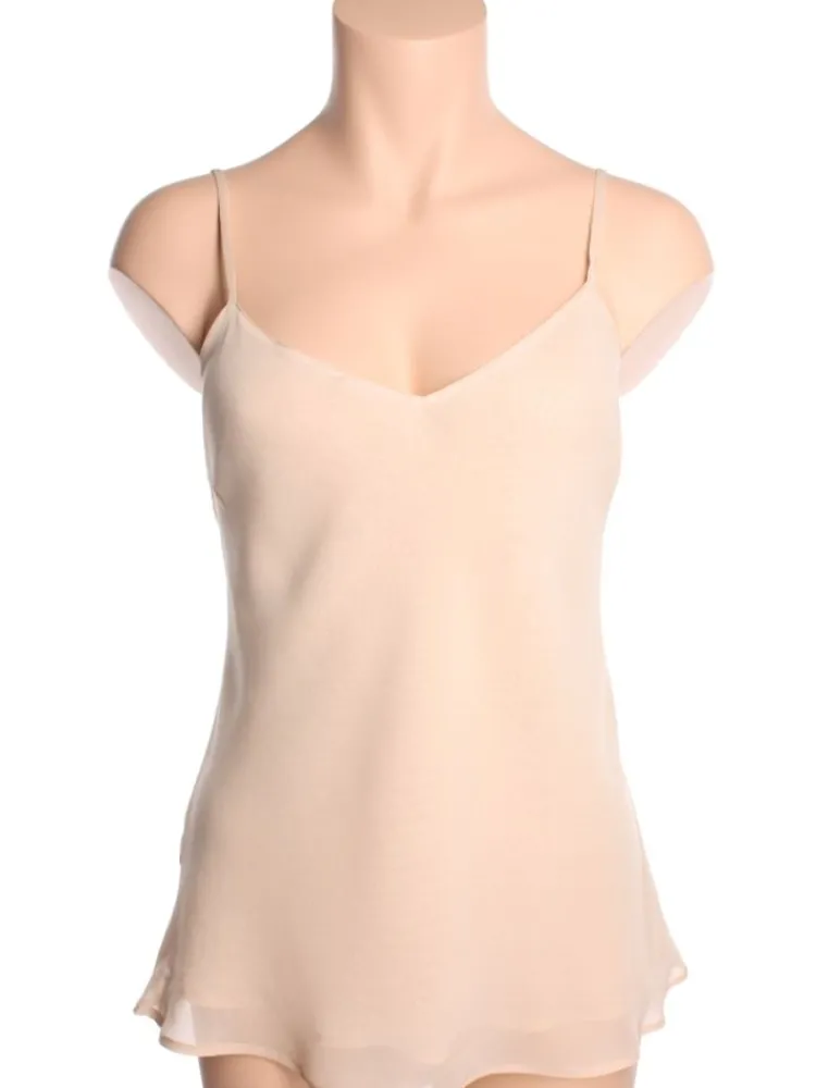 Das Seidentop Fidji Mousselin der französischen Edel-Marke Marjolaine ist aus feinem Seidemousselin (100% Seide) gefertigt. Das gerade geschnittene Seidentop hat einen leicht V-förmigen Ausschnitt. Die feinen Spaghetti-Träger sind hinten verstellbar.