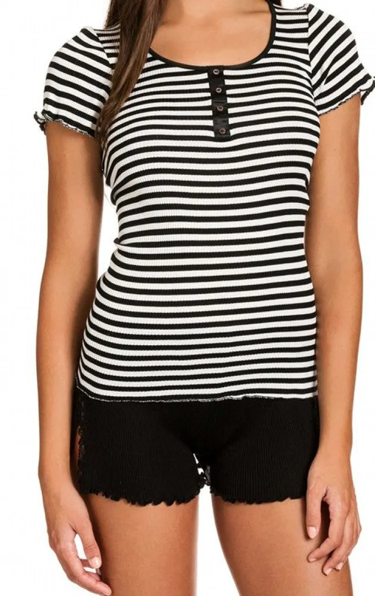 Das Seide-Baumwolle T-Shirt Arona ist aus hautsympathischen Ripp- Jersey in einer feinen Seide-Baumwolle Mischung (70% Seide) hergestellt. Dieses Unterhemd ist ein temperierendes Unterziehshirt mit kurzem Arm aus der Seide-Baumwolle Unterwäsche Kollektion Arona von Gattina Dessous. Mit den fröhlichen Ringeln in schwarz-weiß oder marineblau-weiß ist dieses T-Shirt aber auch als sommerliche Oberbekleidung kombinationsstark verwendbar.